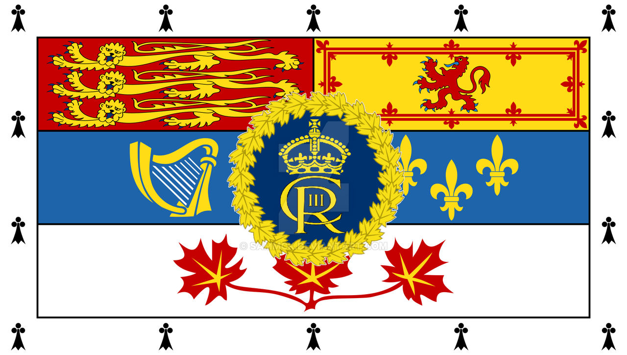 Proposed King's flag for Canada. Like the flags of other Royal Family members the cypher is within a garland of maple leaves |