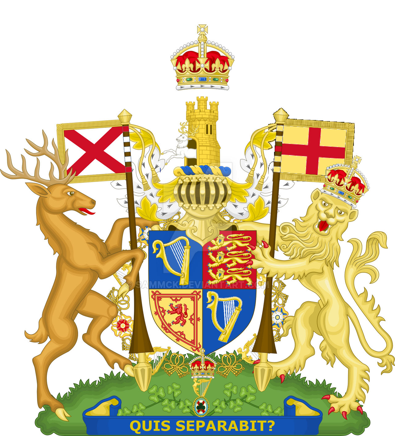 arms of Ulster. I would propose a variant of the Royal coat of arms with the heraldry of the Kingdom of Ireland: