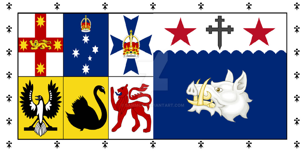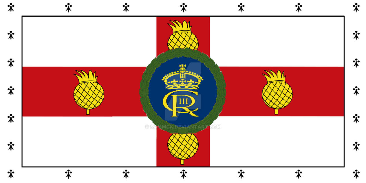 If not though these are my proposals for those realms in which the King has his own unique standard. In all these cases I put the flag in an ermine border. My thinking here is that the flags of members of the Royal Family be distinguished by an ermine border. Whereas the Governor General could use a banner without an ermine border. I've also used the full cypher as a crowned 'C' will look an awful lot like the monogram of the Queen Consort. I've deliberately chosen not to use the roses used in the personal flag of Queen Elizabeth II,