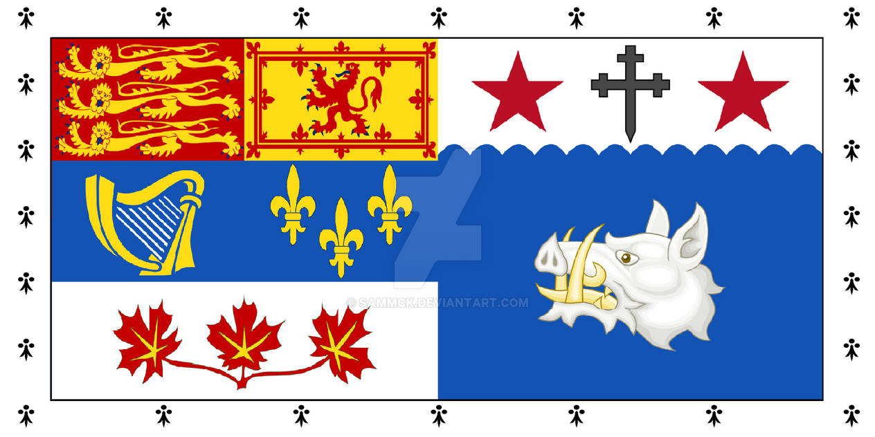 Will there be seperate flags for Commonwealth Realms? It is probably unlikely that the Queen Consort will travel to any of the Commonwealth realms without the King and so negating the need to use a unique flag. However I've had ago at throwing together some proposals. First is is the Shand arms impaled with the Royal Arms in right to the appropriate Commonwealth Realm.